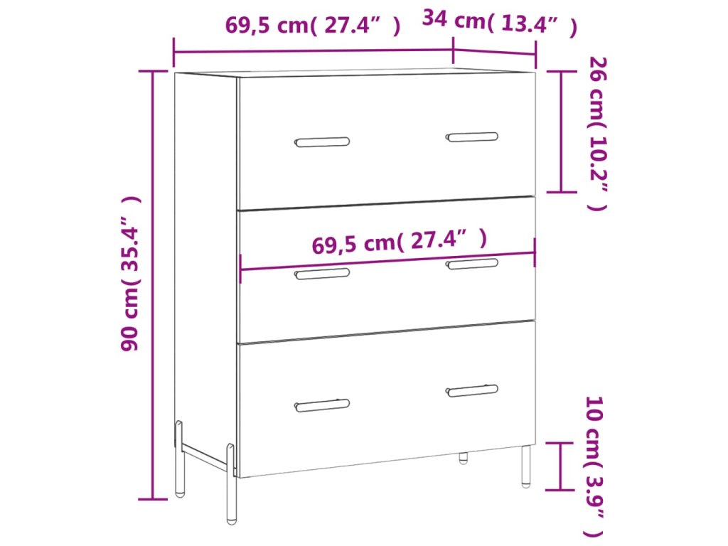 - Rozměry: 69,5 x 34 x 90 cm (Š x H x V)