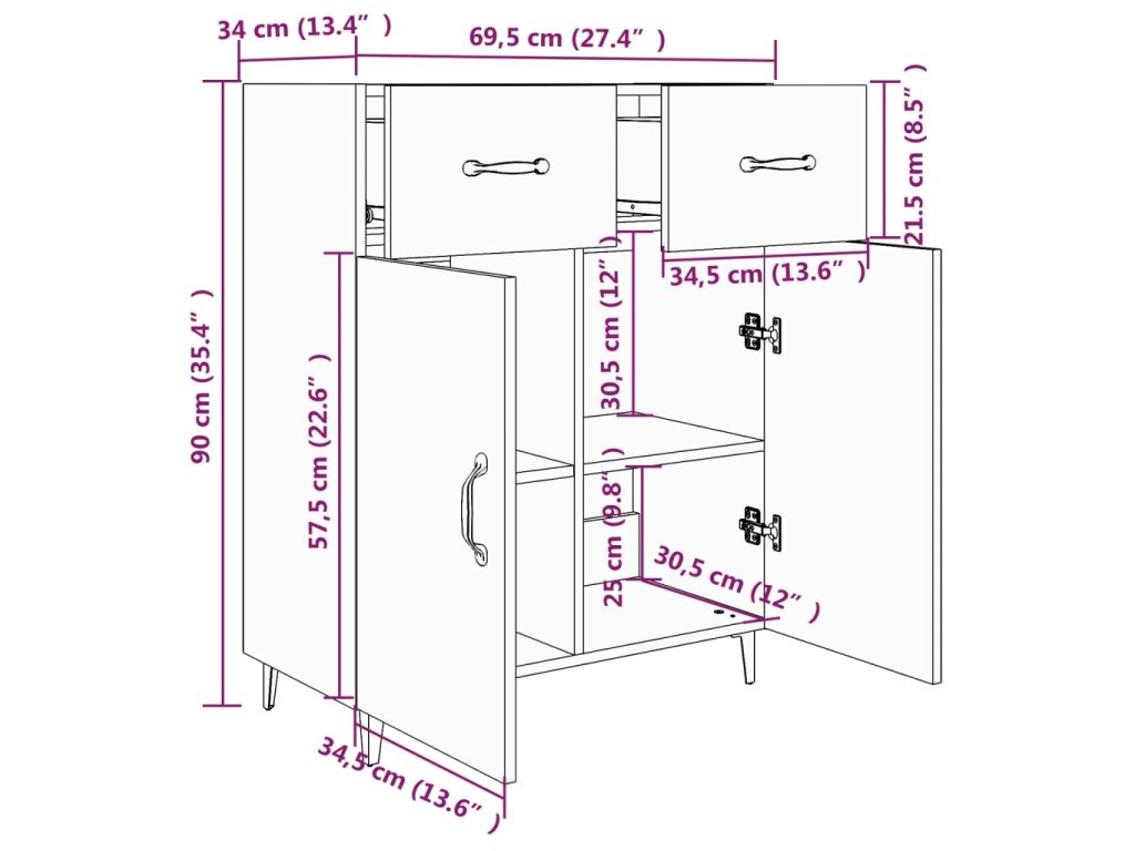 - Rozměry: 69,5 x 34 x 90 cm (Š x H x V)