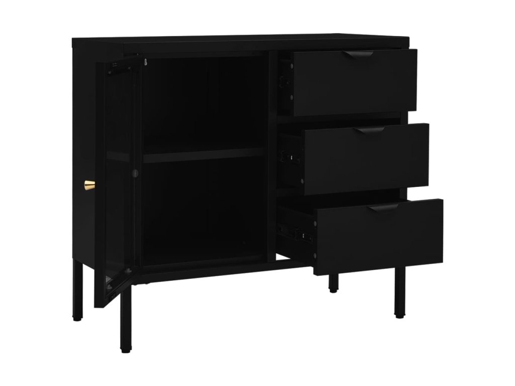 Konstrukce této úložné skříňky je zhotovená z oceli a tvrzeného skla, je tedy robustní a odolná a zajišťuje roky používání. Skříňka má 1 nastavitelnou polici a 3 zásuvky, které poskytují dostatek prostoru pro přehledné uložení DVD, multimediálních zařízení, knih a drobných nezbytností, které chcete mít po ruce. Zásuvky s třídílnými pojezdy s kuličkovými ložisky zajišťují hladké otevírání a zavírání. Skříňka se snadno čistí vlhkým hadříkem.