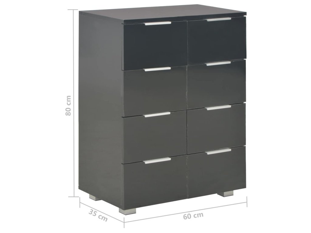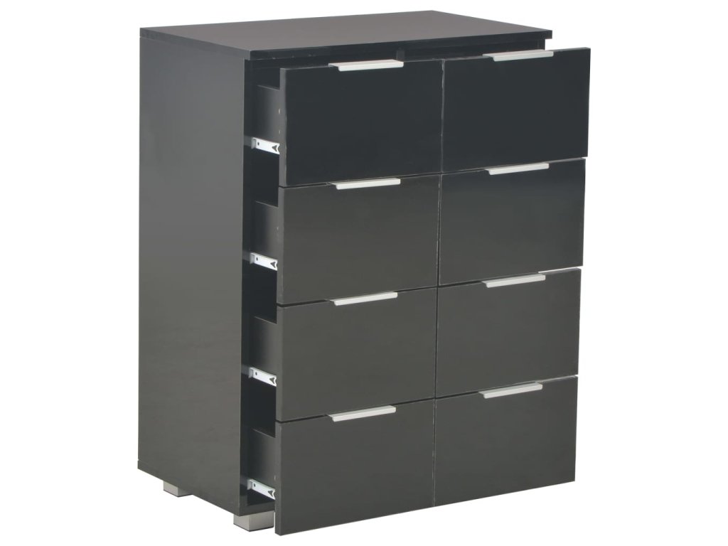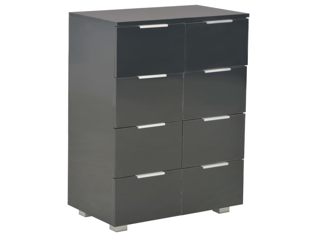 Skříňka se zásuvkami je vyrobena z kompozitního dřeva s vysoce lesklou povrchovou úpravou. Vyniká proto svým rafinovaným vzhledem a zároveň je mimořádně stabilní a odolná. V příborníku navíc najdete 8 zásuvek, které vám poskytnou spoustu místa, kde si budete moct uschovat různé předměty, které by se jinak povalovaly kolem. Tato úložná skříňka s vysoce lesklým povrchem se snadno čistí.