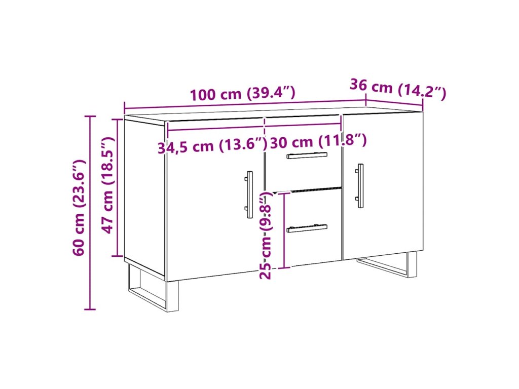- Praktická dvířka: Dvířka příborníku zajišťují uzavřený úložný prostor, ve kterém budou vaše věci přehledně uspořádány, chráněny a nebudete je mít na očích.