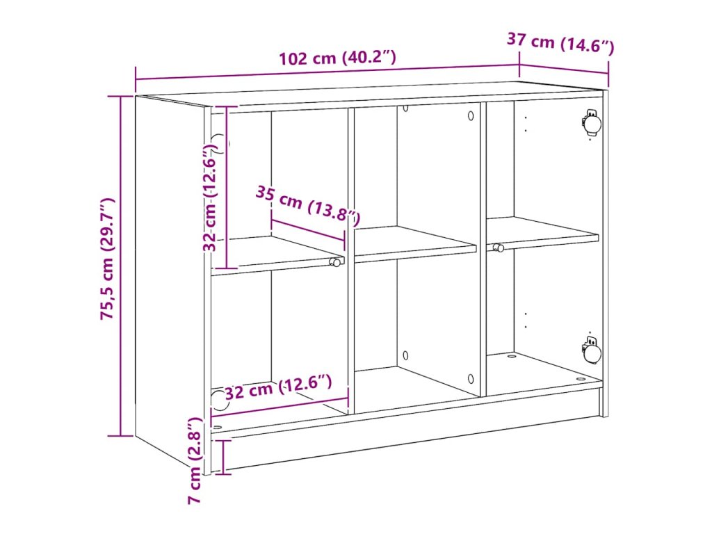 - Rozměry: 102 x 37 x 75,5 cm (Š x H x V)