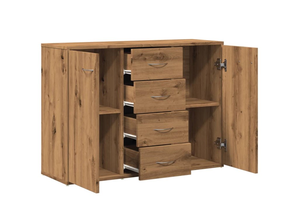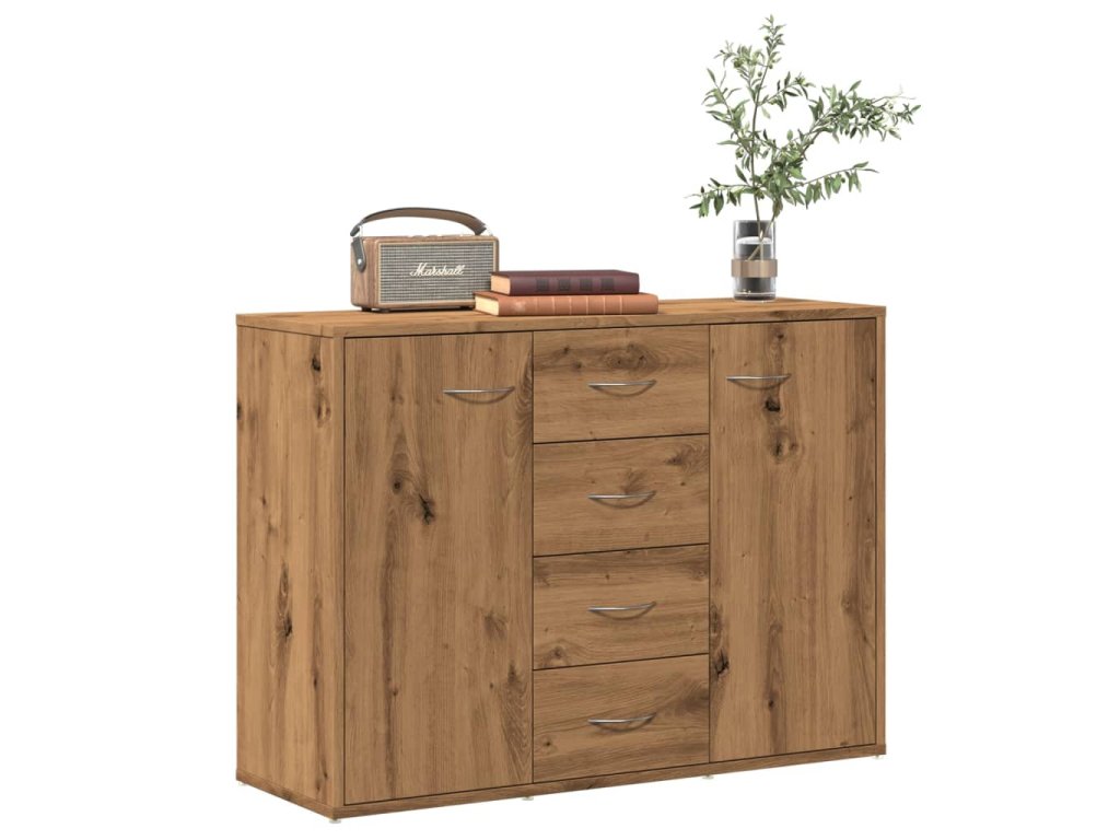 - Spousta úložného prostoru: Odkládací skříňka je vybavena 4 zásuvkami a 2 dvířky, poskytuje tedy dostatek úložného prostoru pro přehledné uspořádání různých věcí, které tak budete mít neustále po ruce.