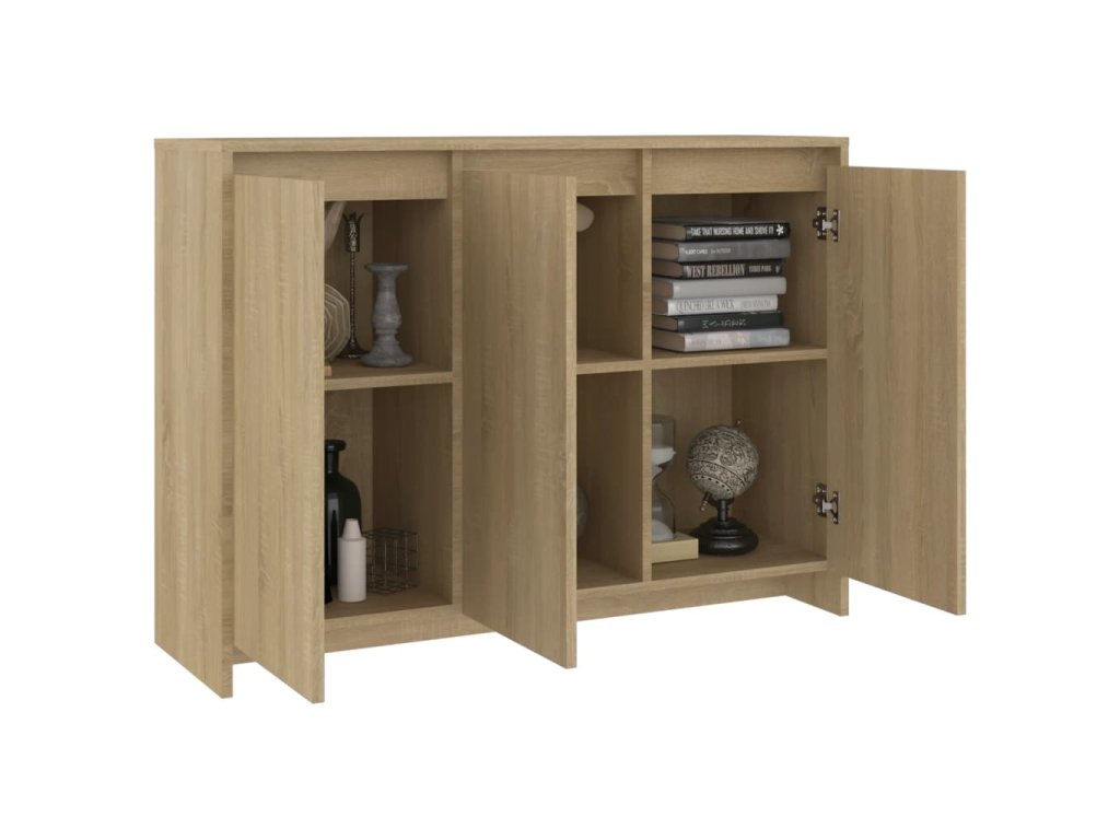 Tato odkládací skříňka se vyznačuje robustní a odolnou konstrukcí. Skříňka se 3 dvířky poskytuje spoustu prostoru pro uložení knih, multimediálních zařízení a dalších věcí. Robustní horní deska je ideální pro vystavení dekorativních předmětů, fotorámečků nebo pokojových rostlin.