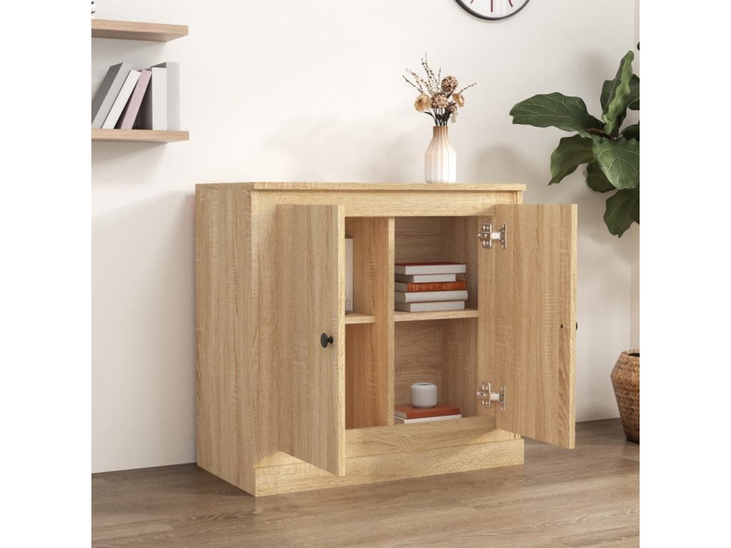 - Možnost vystavení: Robustní horní deska této skříňky je ideální pro vystavení dekorativních předmětů, zarámovaných fotografií nebo pokojových rostlin.