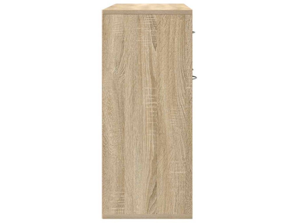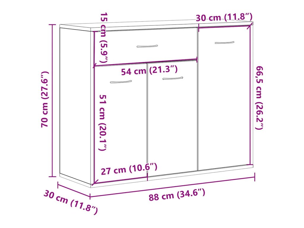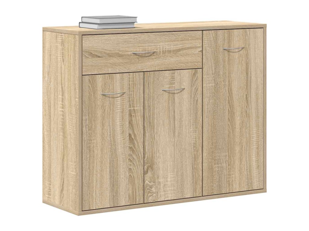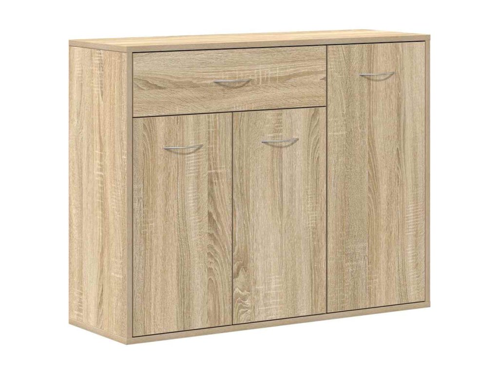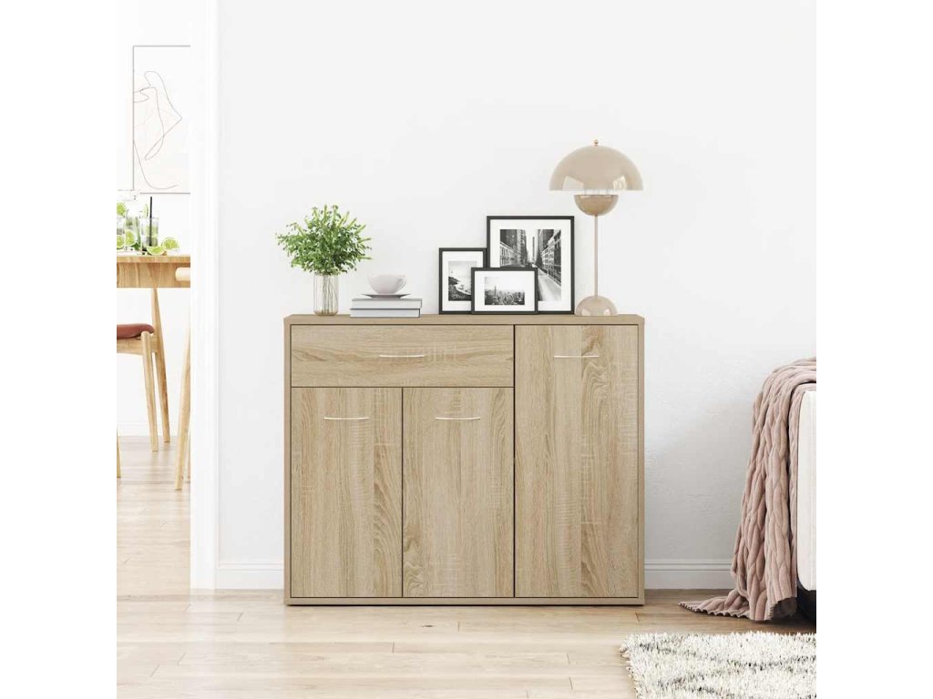 Příborník je vyroben z kvalitního kompozitního dřeva , a je tudíž mimořádně pevný a odolný. Najdete v něm 1 velkou zásuvku a 3 dvířka, které vám poskytnou spoustu místa na knihy, multimediální zařízení a jiné věci. Robustní horní deska je ideální pro vystavení dekorativních předmětů, zarámovaných fotografií nebo pokojových rostlin.