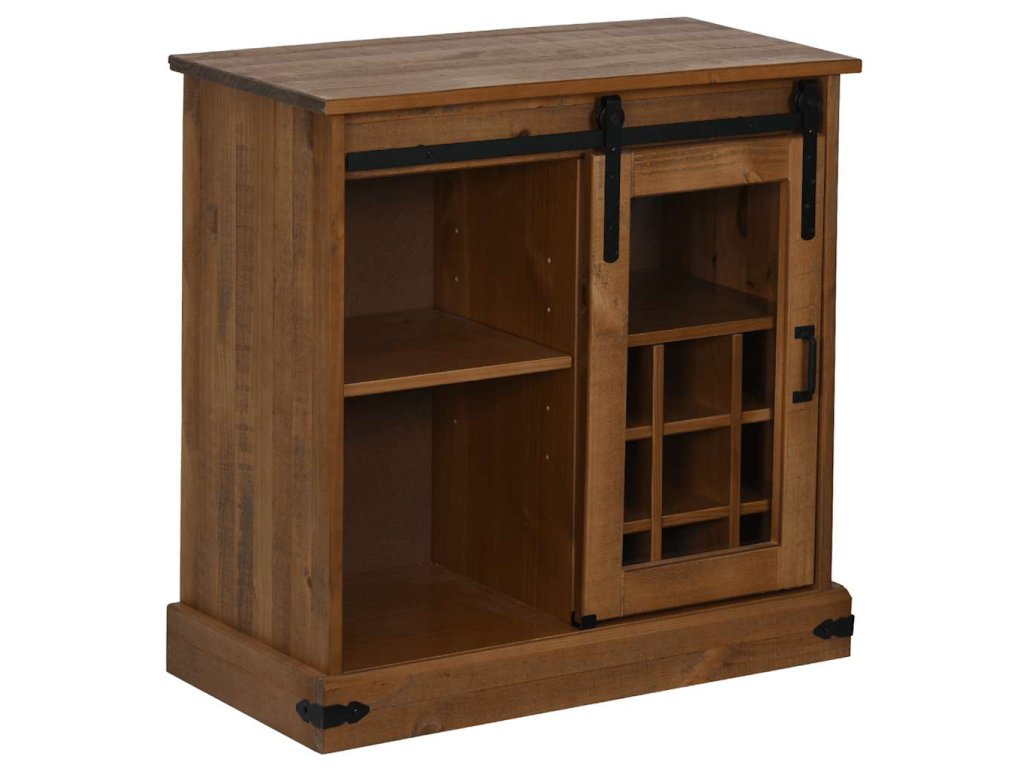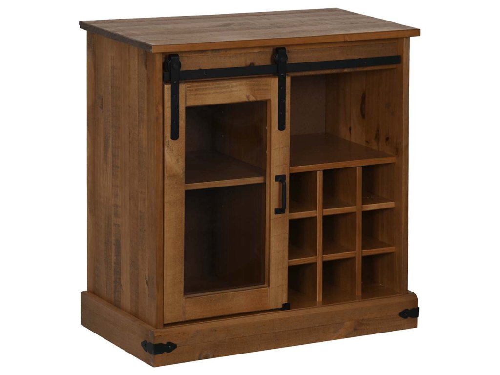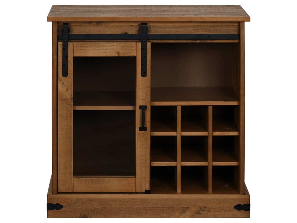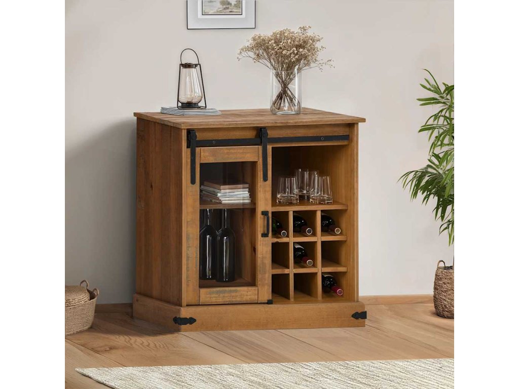 - Dostatek úložného prostoru: Skříňka je vybavena posuvnými dveřmi, policemi a držáky na láhve vína, které poskytují všestranné řešení pro ukládání věcí, díky němuž budou vaše potřeby uspořádané a bez nepořádku. Posuvné dveře maximalizují kapacitu skříně, což z ní činí efektivní volbu pro udržování pořádku.