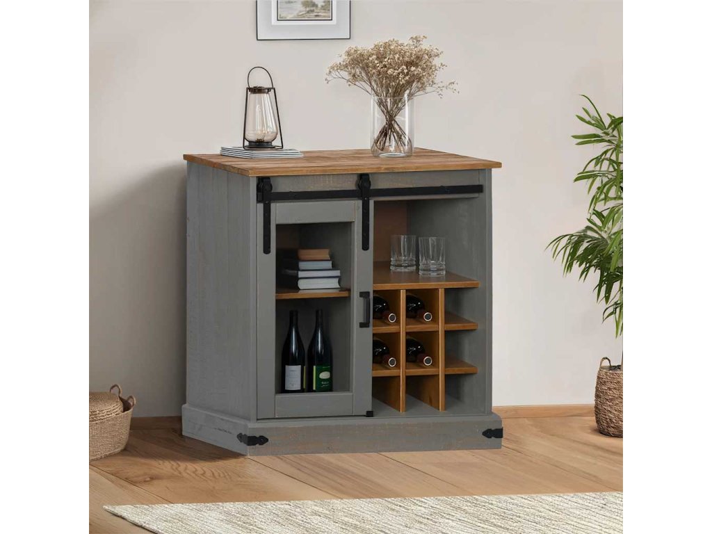 - Dostatek úložného prostoru: Skříňka je vybavena posuvnými dveřmi, policemi a držáky na láhve vína, které poskytují všestranné řešení pro ukládání věcí, díky němuž budou vaše potřeby uspořádané a bez nepořádku. Posuvné dveře maximalizují kapacitu skříně, což z ní činí efektivní volbu pro udržování pořádku.