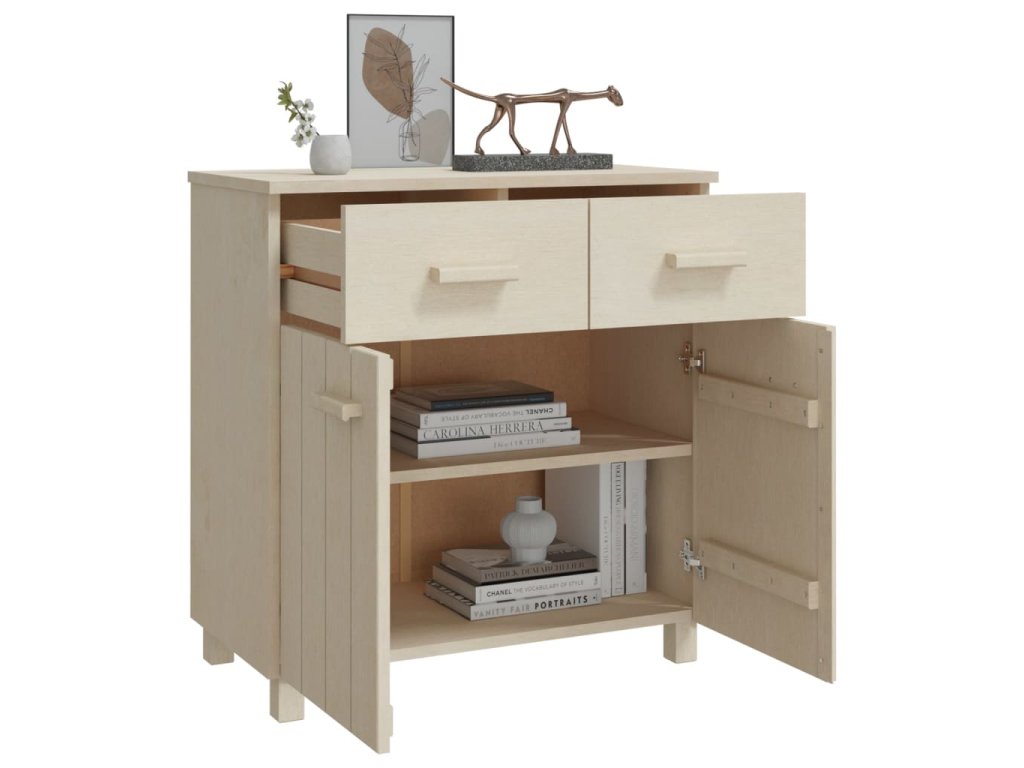Skříňka se zásuvkami je vyrobená z masivního borového dřeva, takže je stabilní a odolná. Příborník má 2 dvířka a 2 hladce výsuvné zásuvky, poskytne vám tedy spoustu prostoru pro přehledné uložení různých každodenních nezbytností, které tak budete mít na dosah ruky. Robustní stolní deska je navíc ideální pro vystavení dekorativních předmětů, fotorámečků a pokojových rostlin.