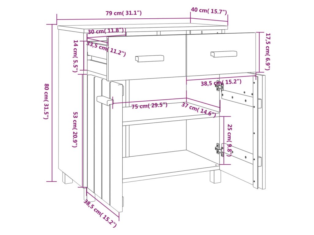 Skříňka se zásuvkami je vyrobená z masivního borového dřeva, takže je stabilní a odolná. Příborník má 2 dvířka a 2 hladce výsuvné zásuvky, poskytne vám tedy spoustu prostoru pro přehledné uložení různých každodenních nezbytností, které tak budete mít na dosah ruky. Robustní stolní deska je navíc ideální pro vystavení dekorativních předmětů, fotorámečků a pokojových rostlin.