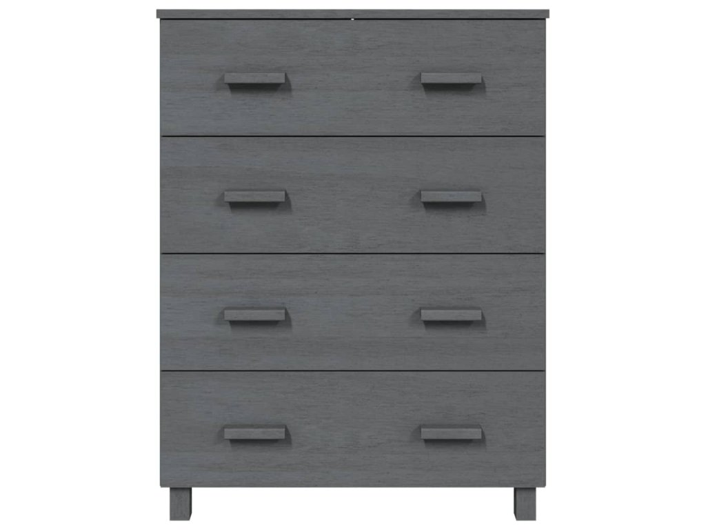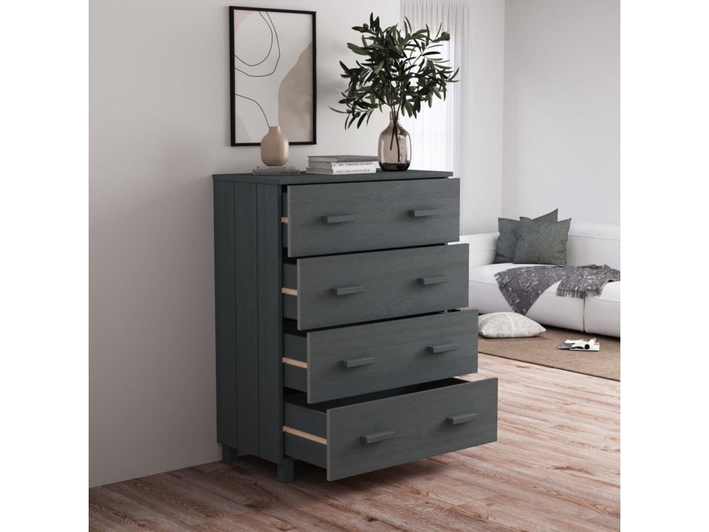 Skříňka se zásuvkami je zhotovena z masivního borového dřeva, je tedy bytelná a stabilní. Skříňka obsahuje 4 hladce výsuvné zásuvky, které poskytují dostatek prostoru pro přehledné uložení různých každodenních nezbytností, které tak budete mít pořád po ruce. Robustní horní deska je ideální pro vystavení dekorativních předmětů, fotorámečků nebo pokojových rostlin.