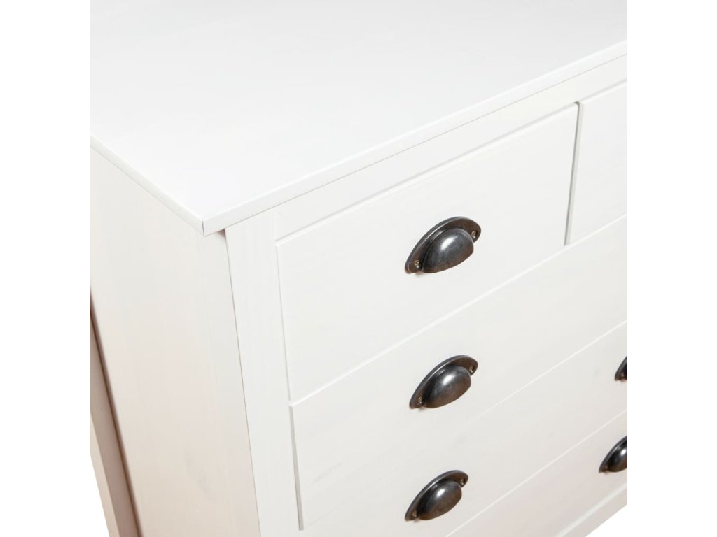 Kompaktní skříňka má 5 zásuvek s hladkým otevíráním, do kterých si můžete uspořádat různé drobnosti, které chcete mít na dosah ruky. Obdélníková horní část vám navíc poslouží k vystavení mís s ovocem nebo dekorativních předmětů, jako jsou fotorámečky nebo pokojové rostliny. Sestavení úložné skříňky je snadné.
