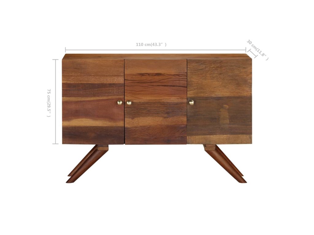 Skříňka je zhotovená z masivního recyklovaného dřeva, které pochází z trámů, podlah a podpěrných nosníků ze starých budov určených k demolici. Může tedy obsahovat celou řadu různých typů dřeva, jako je borovice, teak, buk, dub, cedr, mangovník, akácie atd. Recyklované dřevo tak nabývá vlastností všech těchto rozličných druhů dřeva. Recyklované dřevo je již zestárlé, ošlehané a vyschlé, takže se nesmršťuje ani neohýbá. Překrásná kresba dřeva činí každý kus nábytku jedinečným a lehce odlišným od ostatních. Známky opotřebení a zřetelná textura dřeva vypovídají o jeho bohaté historii a dodávají příborníku hřejivý a autentický vzhled. Každá fáze výrobního procesu je prováděna s největší pečlivostí, ať už se jedná o leštění, natírání anebo lakování.