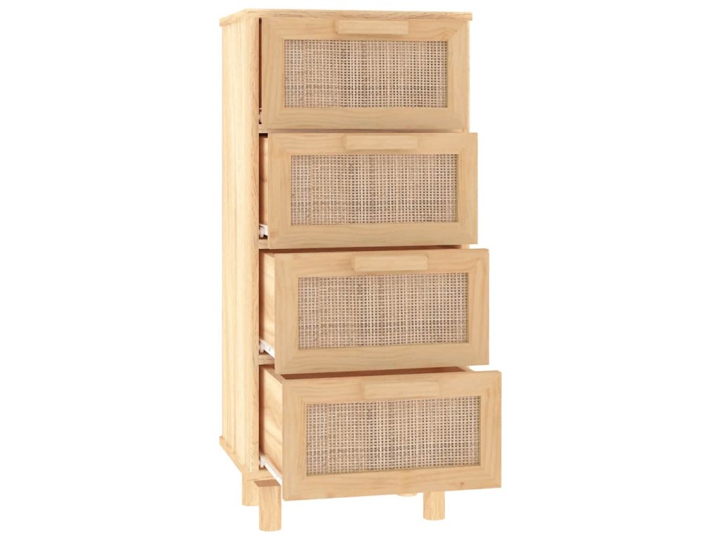 - Spousta úložného prostoru: Skříňka je vybavena 4 zásuvkami, poskytne vám tedy spoustu prostoru pro přehledné uložení různých každodenních potřeb, které tak budete mít neustále po ruce. Přírodní ratanový výplet na zásuvce jí dodává na kráse.