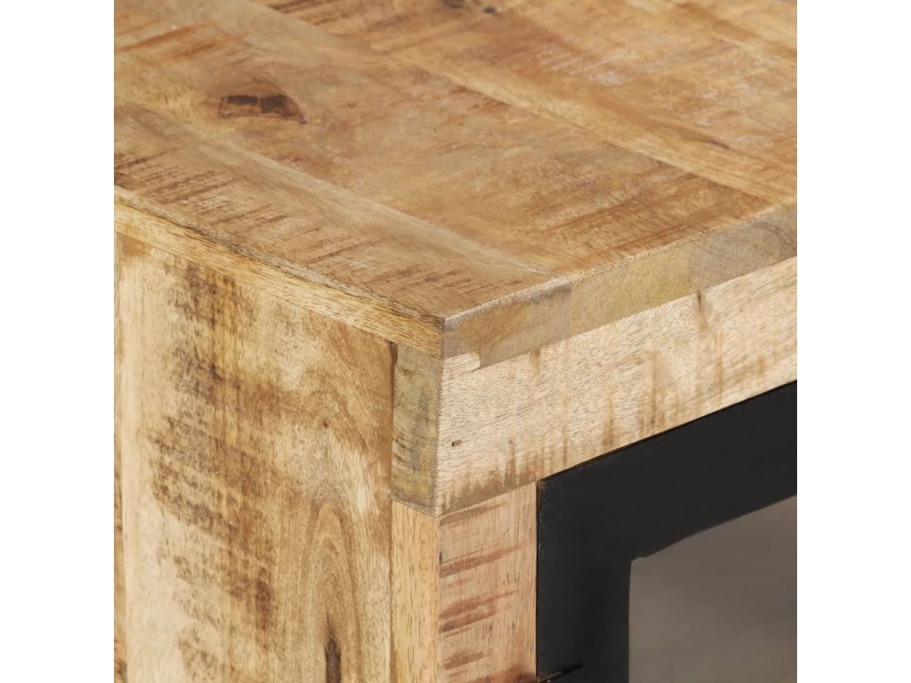 - Materiál: masivní mangovníkové dřevo s přírodní povrchovou úpravou, kov, sklo