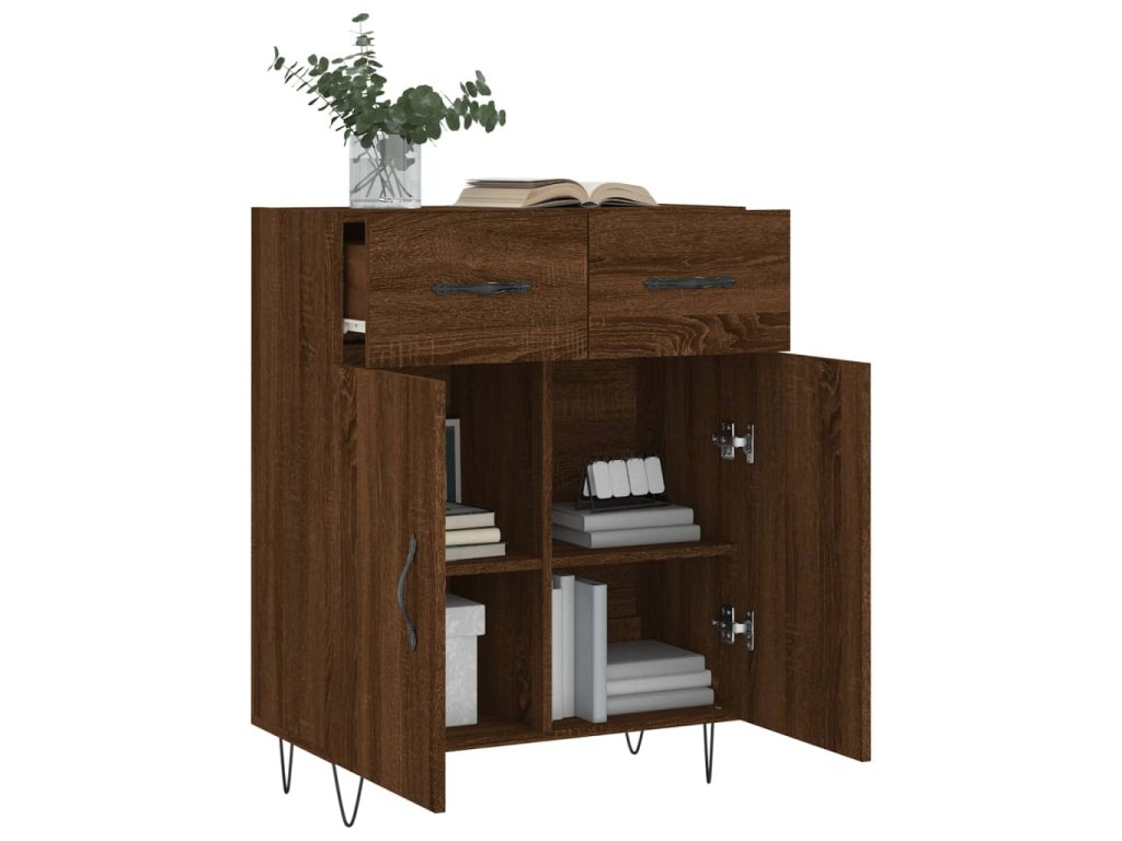 - Stabilní a robustní horní část: Horní část příborníku se skvěle hodí k vystavení dekorativních předmětů, fotorámečků a pokojových rostlin.