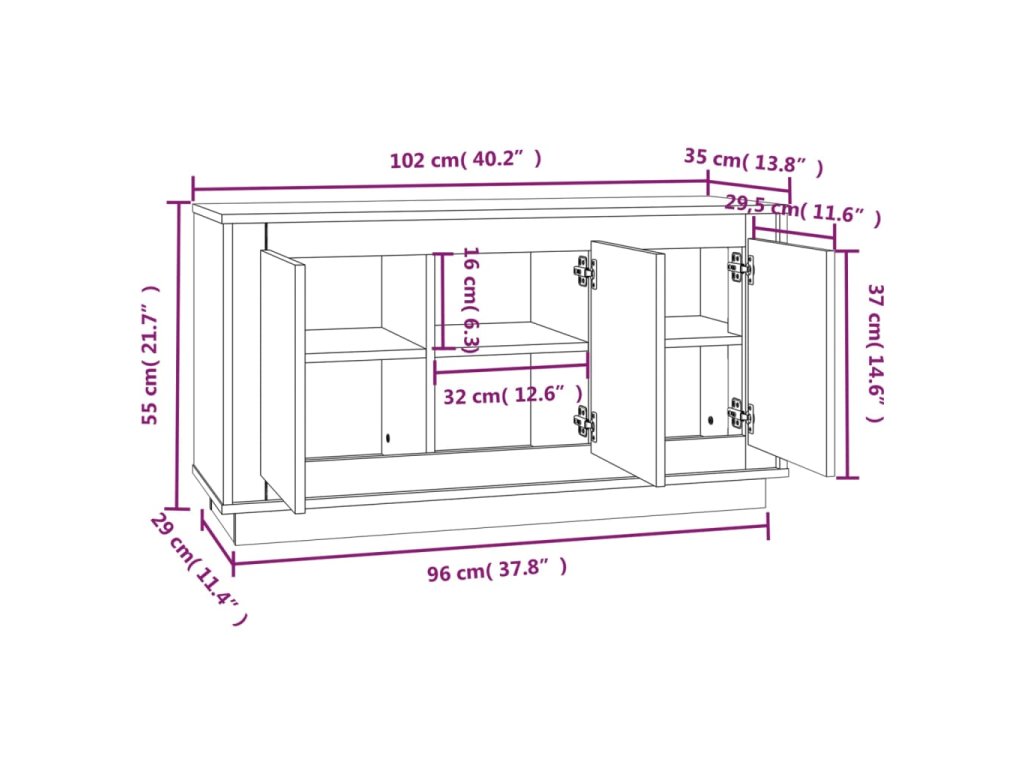 - Rozměry: 102 x 35 x 55 cm (Š x H x V)