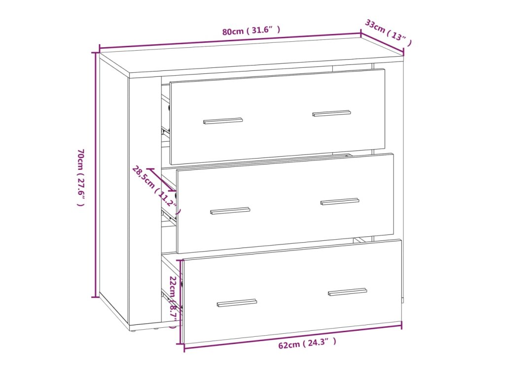 - Spousta úložného prostoru: Příborník je vybaven 3 zásuvkami, poskytne vám tedy spoustu prostoru pro přehledné uložení různých každodenních potřeb, které tak budete mít neustále po ruce.