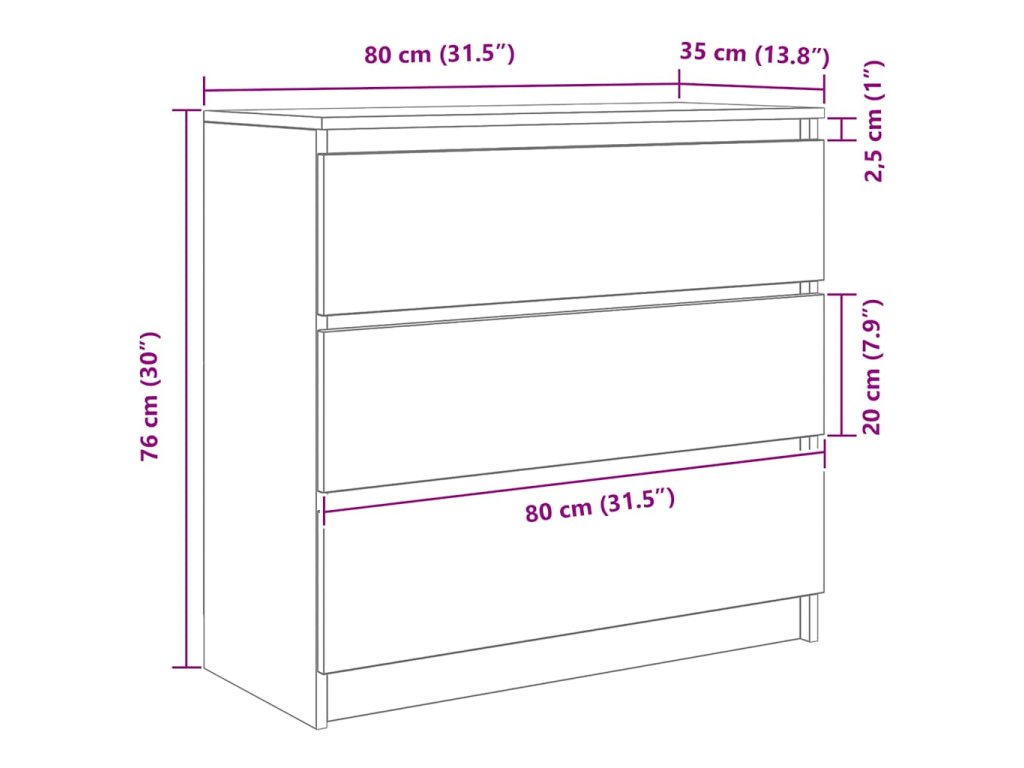 - Rozměry zásuvek: 80 x 30 x 20 cm (š x h x v)