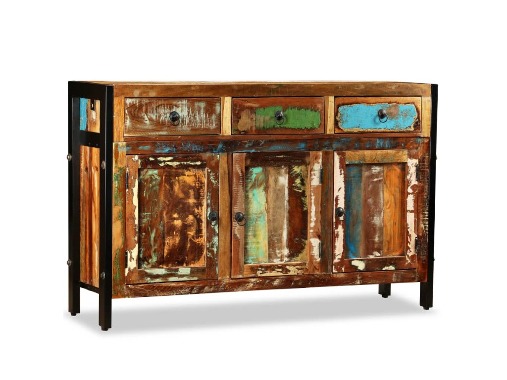 Tento vintage dřevěný příborník se třemi zásuvkami a třemi přihrádkami vám nabízí dostatek úložného prostoru a pomůže vám udržovat své věci uložené.