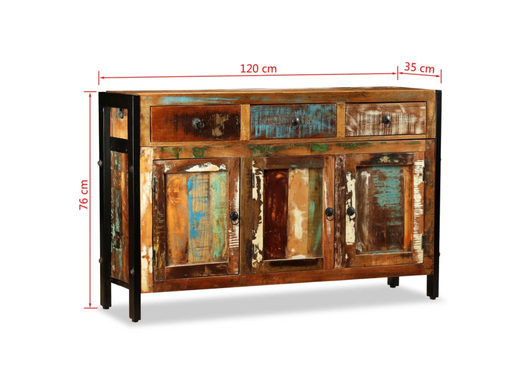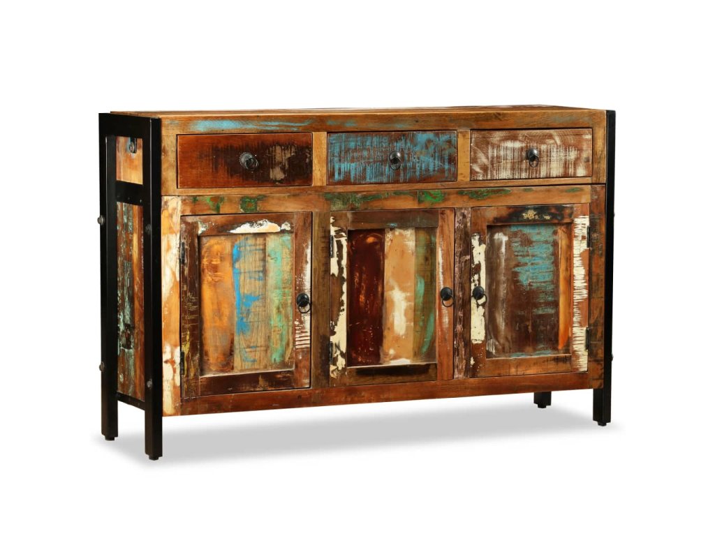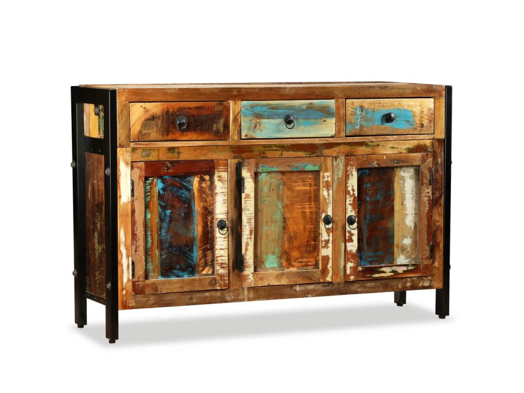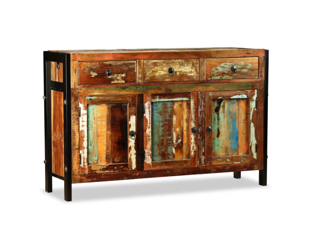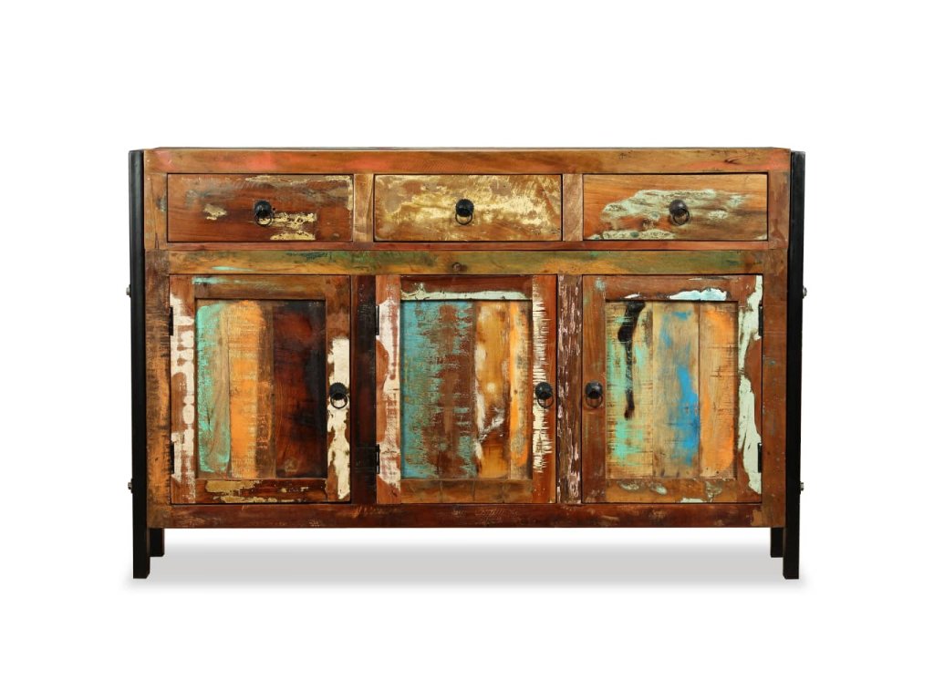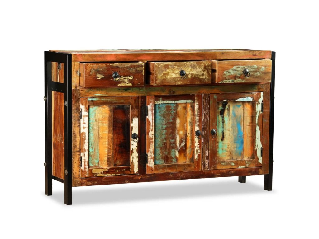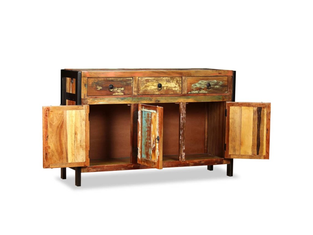 Příborník je vyrobený z recyklovaného masivu, a může se tedy pochlubit vlastnostmi různých typů dřeva, jako je mahagon, teak, tvrdé dřevo, magovník, akácie, atd. Toto dřevo je nejen pevné a odolné, ale taky hezké na pohled. Tento kousek všem ukáže, že se staráte o obnovitelné zdroje, ochranu životního prostředí a udržitelnost rozvoje. Každý kus nábytku je jedinečný a lehce odlišný od všech ostatních. Známky používání to jen podtrhují a nadto příborníku propůjčují líbivý vintage vzhled.