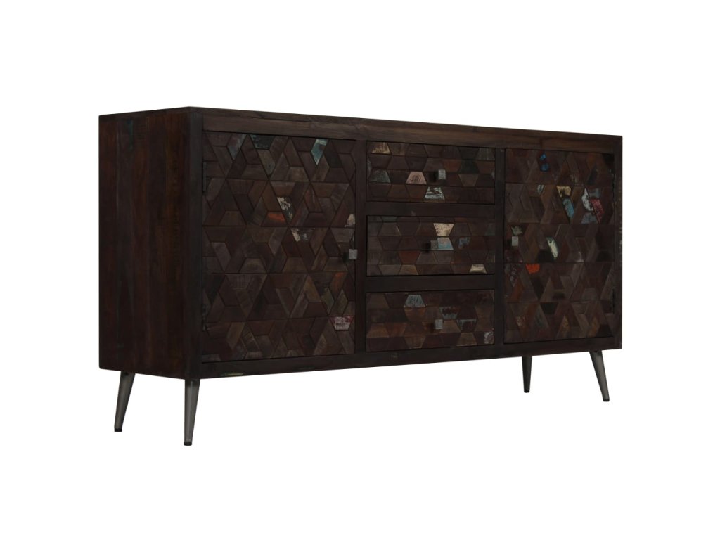 Příborník je zhotovený z masivního recyklovaného dřeva, které pochází z trámů, podlah a podpěrných nosníků ze starých budov určených k demolici. Může tedy obsahovat celou řadu různých typů dřeva, jako je borovice, teak, buk, dub, cedr, mangovník, akácie atd. Recyklované dřevo tak nabývá vlastností všech těchto rozličných druhů dřeva. Recyklované dřevo je již zestárlé, ošlehané a vyschlé, takže se nesmršťuje ani neohýbá. Překrásná kresba dřeva činí každý kus nábytku jedinečným a lehce odlišným od ostatních. Známky opotřebení a zřetelná textura dřeva vypovídají o jeho bohaté historii a dodávají příborníku hřejivý a autentický vzhled. Každá fáze výrobního procesu je prováděna s největší pečlivostí, ať už se jedná o leštění, natírání anebo lakování. Skříňka disponuje spoustou úložného prostoru, můžete v ní tedy ukládat své časopisy, knihy, DVD a multimediální zařízení tak, aby byly přehledně uspořádané a abyste je měli stále po ruce. Ocelové nohy přispívají k bytelnosti příborníku a přitom zvýrazňují jeho industriální styl. Montáž je snadná.