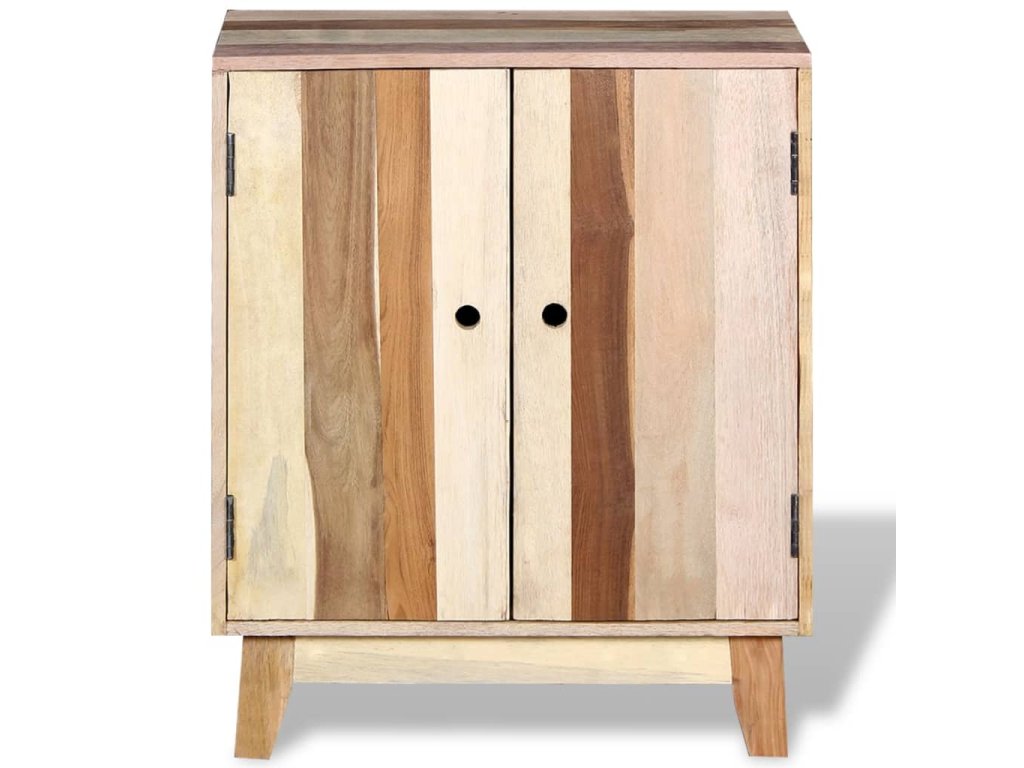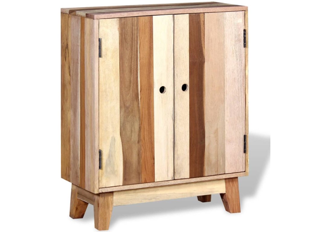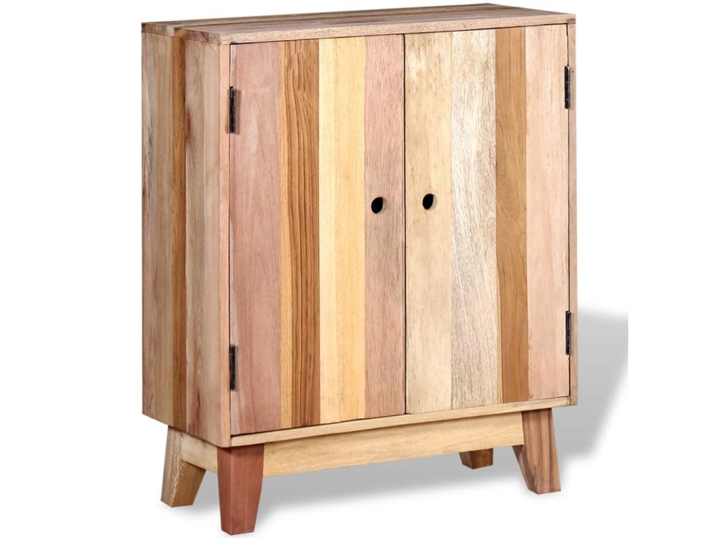 Tato dřevěná odkládací skříňka ve starožitném stylu se 2 dvířky a 2 policemi vám poskytne dostatek úložného prostoru a pomůže vám udržet vaše věci ve skvělém pořádku. Na pevnou horní desku můžete umístit počítač, tablet, knihy, vázy nebo různé dekorace. Tato skříňka z recyklovaného dřeva bude výbornou volbou jako příborník do obývacího pokoje i jako skříňka do ložnice. Můžete ji použít také jako odkládací stolek, příborník, konzolový stolek apod.