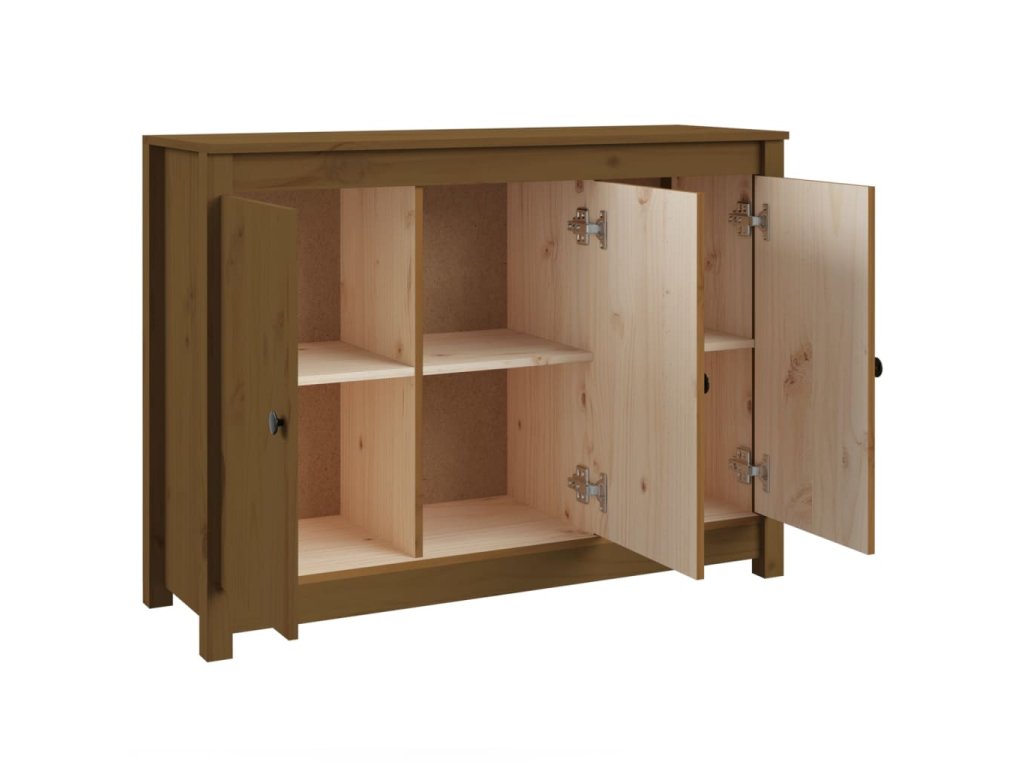 - Masivní borové dřevo: Masivní borové dřevo je krásný přírodní materiál. Borové dřevo má rovnou kresbu a obsahuje suky, které materiálu dodávají jeho charakteristický, rustikální vzhled. Příborník je pro lepší stabilitu vyrobený z masivního dřeva.