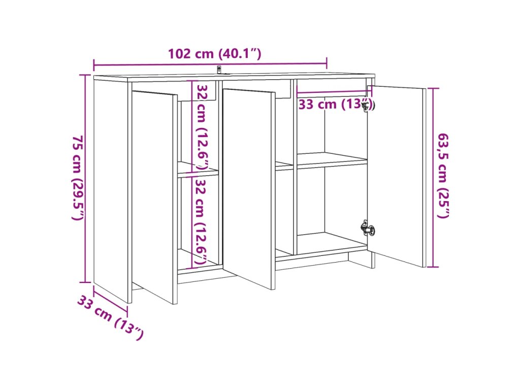- Rozměry: 102 x 33 x 75 cm (Š x H x V)