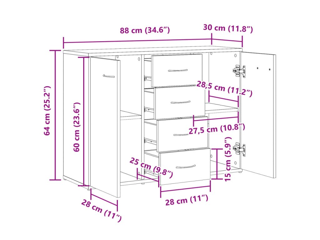 - Rozměry: 88 x 30 x 64 cm (Š x H x V)
