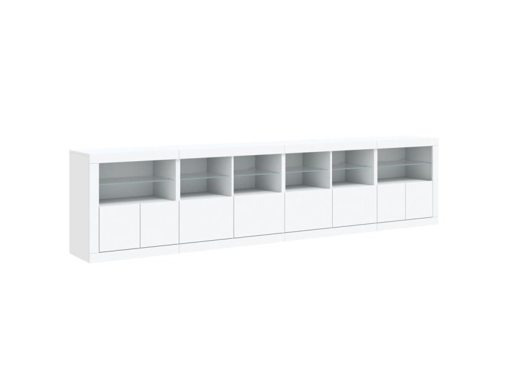 - RGB LED světla: Skříňka je vybavena zářivými RGB LED světly. Různé přizpůsobitelné nabídky vám umožní snadno změnit barvu světel nebo dokonce i nastavit světla tak, aby se přizpůsobila automaticky. Tato LED světla nejen podtrhují moderní vzhled příborníku, ale také mu dodávají na módním půvabu.