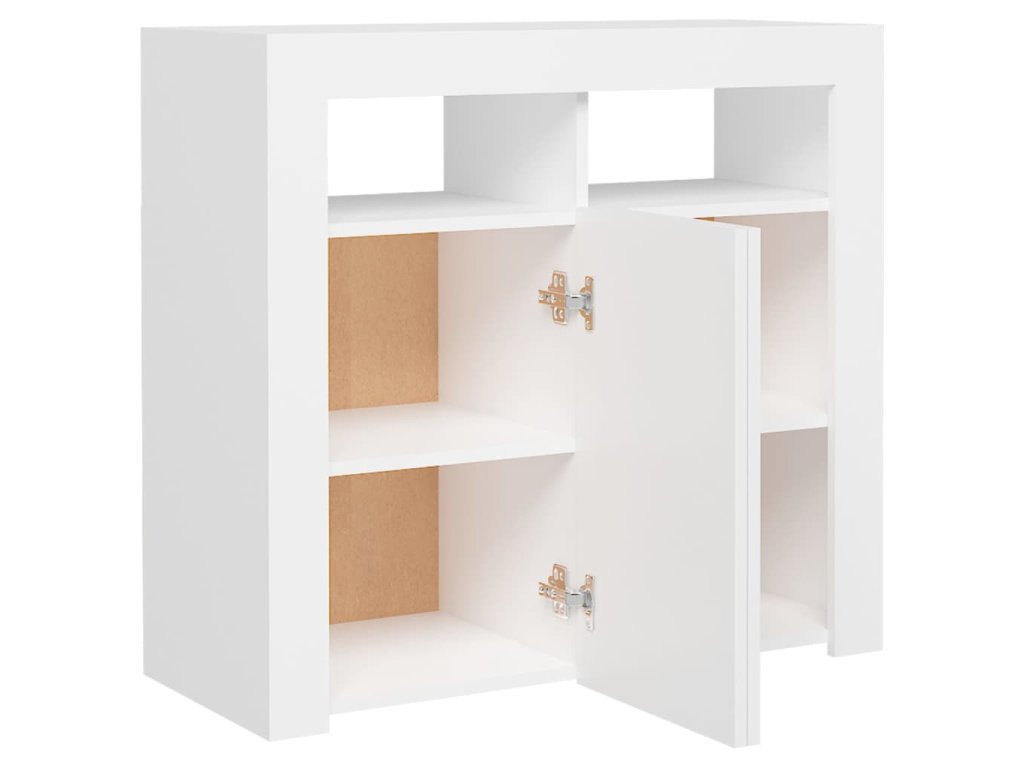 Pevná konstrukce tohoto příborníku jej činí mimořádně odolným a stabilním. Poskytuje také spoustu prostoru pro uložení knih, multimediálních zařízení a dalších věcí. Robustní horní deska je ideální pro vystavení dekorativních předmětů, fotorámečků nebo pokojových rostlin. Tento příborník je vybavený RGB LED světly s několika různými nabídkami, které vám umožní změnit barvu světel nebo nechat světla přizpůsobit automaticky. LED osvětlení podtrhuje moderní vzhled skříňky a zdůrazňuje její trendy styl.