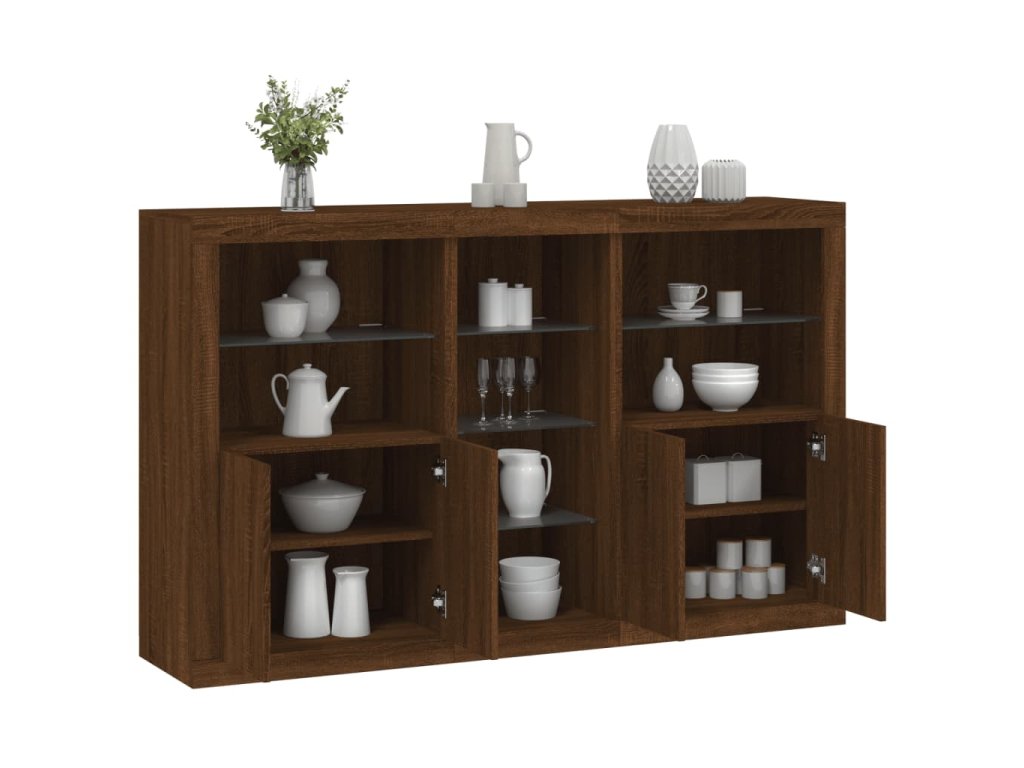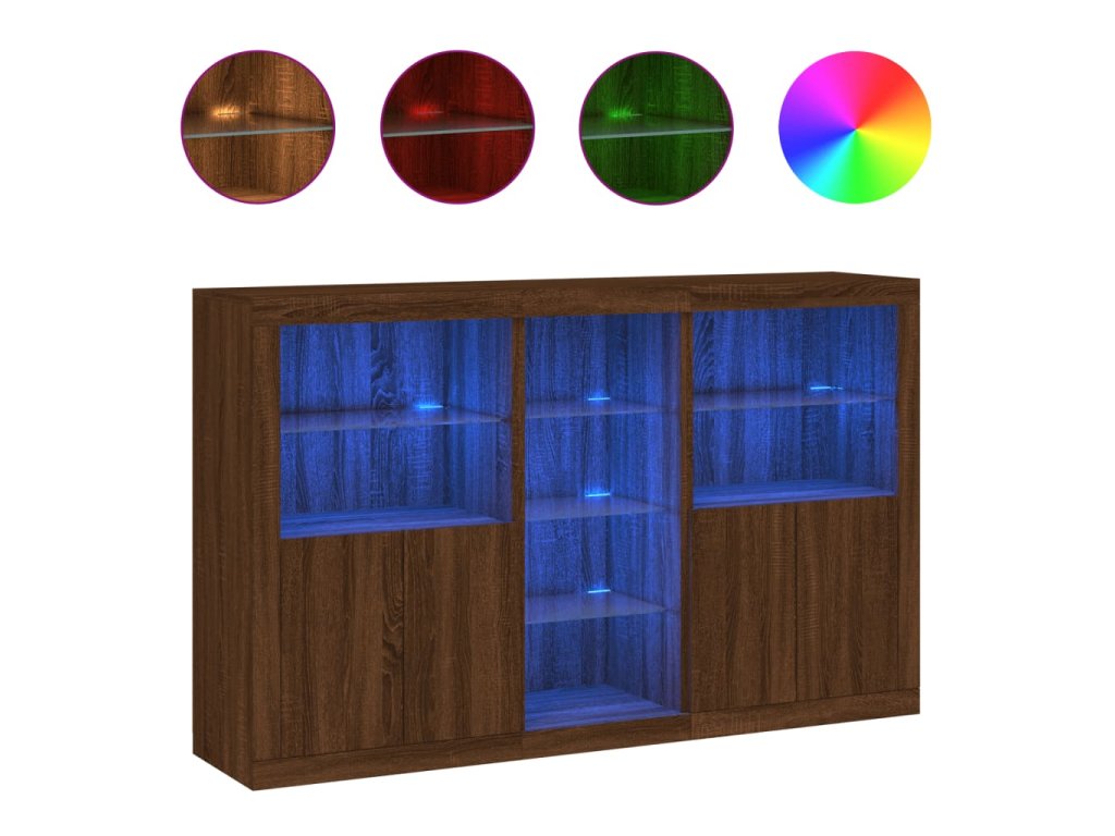 - RGB LED světla: Skříňka je vybavena zářivými RGB LED světly. Různé přizpůsobitelné nabídky vám umožní snadno změnit barvu světel nebo dokonce i nastavit světla tak, aby se přizpůsobila automaticky. Tato LED světla nejen podtrhují moderní vzhled příborníku, ale také mu dodávají na módním půvabu.
