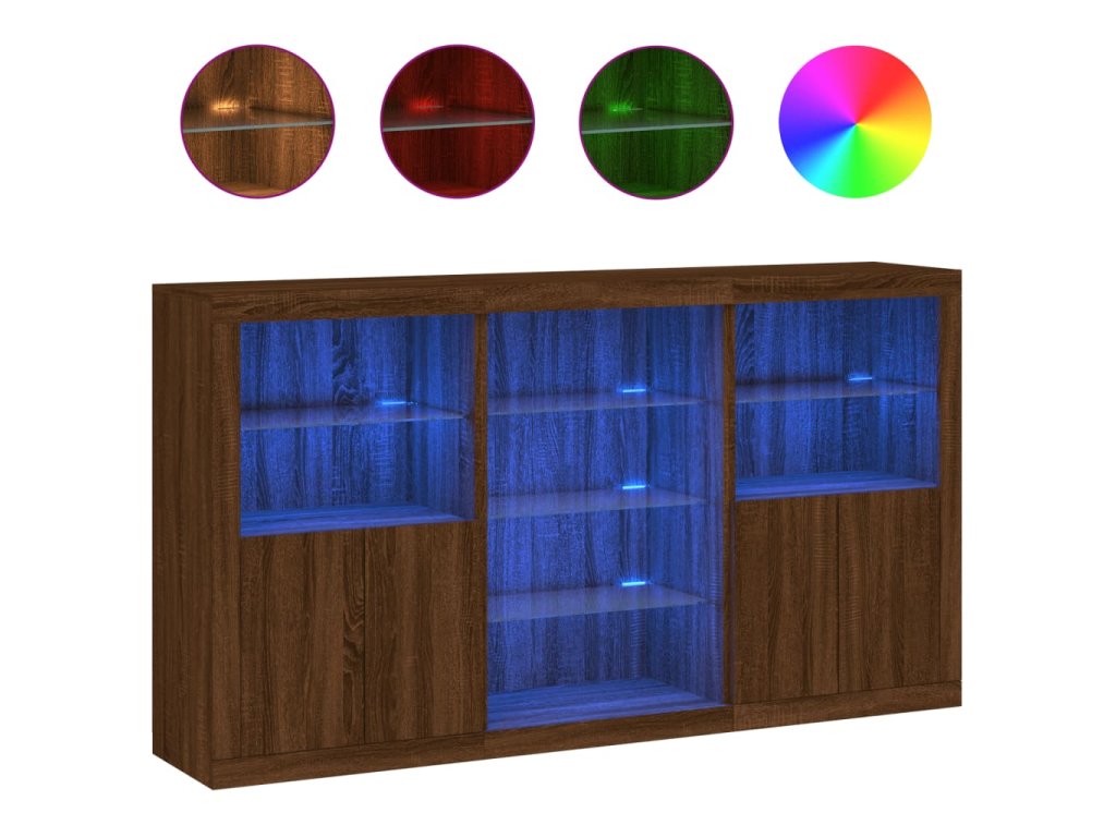 - RGB LED světla: Skříňka je vybavena zářivými RGB LED světly. Různé přizpůsobitelné nabídky vám umožní snadno změnit barvu světel nebo dokonce i nastavit světla tak, aby se přizpůsobila automaticky. Tato LED světla nejen podtrhují moderní vzhled příborníku, ale také mu dodávají na módním půvabu.