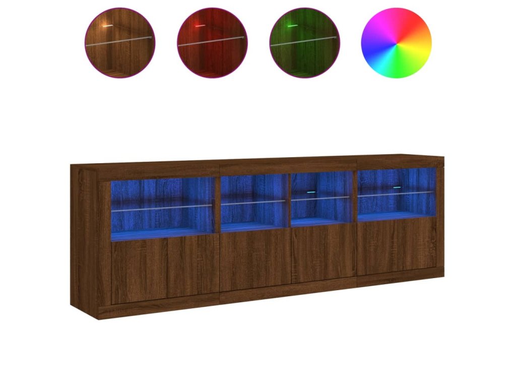 - RGB LED světla: Skříňka je vybavena zářivými RGB LED světly. Různé přizpůsobitelné nabídky vám umožní snadno změnit barvu světel nebo dokonce i nastavit světla tak, aby se přizpůsobila automaticky. Tato LED světla nejen podtrhují moderní vzhled příborníku, ale také mu dodávají na módním půvabu.