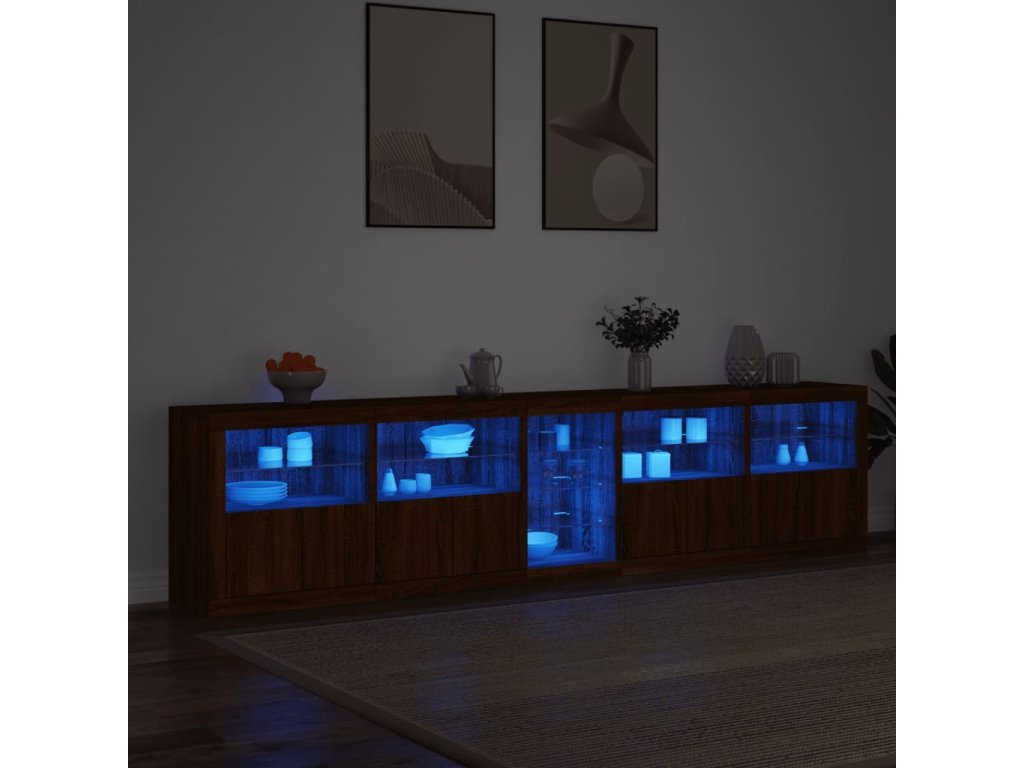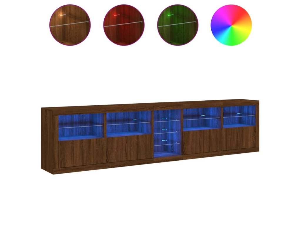 - RGB LED světla: Skříňka je vybavena zářivými RGB LED světly. Různé přizpůsobitelné nabídky vám umožní snadno změnit barvu světel nebo dokonce i nastavit světla tak, aby se přizpůsobila automaticky. Tato LED světla nejen podtrhují moderní vzhled příborníku, ale také mu dodávají na módním půvabu.