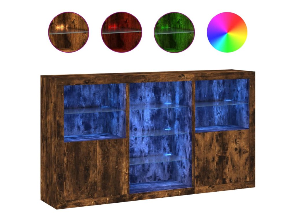 - RGB LED světla: Skříňka je vybavena zářivými RGB LED světly. Různé přizpůsobitelné nabídky vám umožní snadno změnit barvu světel nebo dokonce i nastavit světla tak, aby se přizpůsobila automaticky. Tato LED světla nejen podtrhují moderní vzhled příborníku, ale také mu dodávají na módním půvabu.