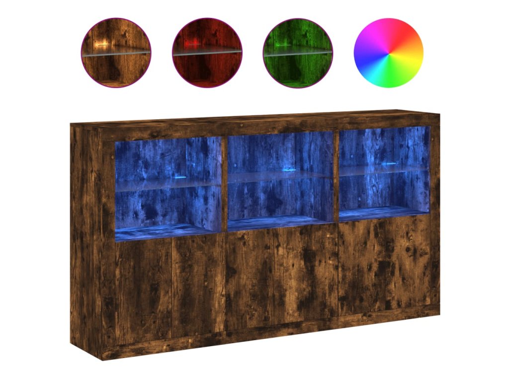 - RGB LED světla: Skříňka je vybavena zářivými RGB LED světly. Různé přizpůsobitelné nabídky vám umožní snadno změnit barvu světel nebo dokonce i nastavit světla tak, aby se přizpůsobila automaticky. Tato LED světla nejen podtrhují moderní vzhled příborníku, ale také mu dodávají na módním půvabu.