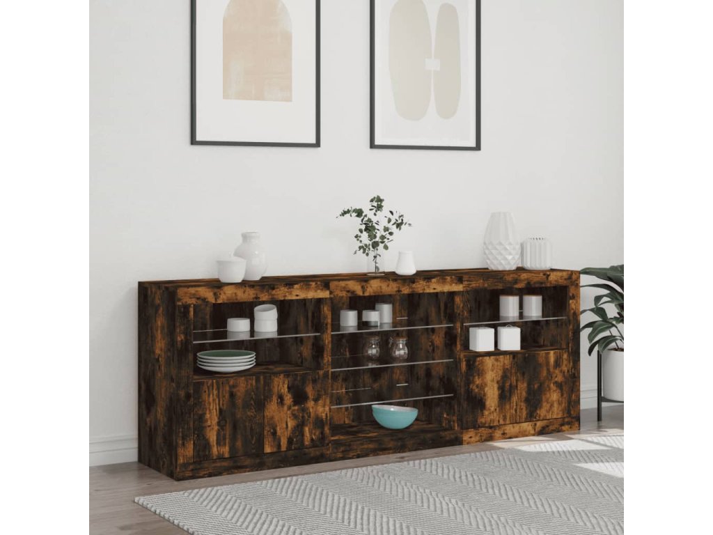 Zkrášlete svůj pokoj tímto moderním příborníkem s LED osvětlením. Snadno jej zkombinujete s nábytkem v jakémkoli stylu ve vašem domě.
