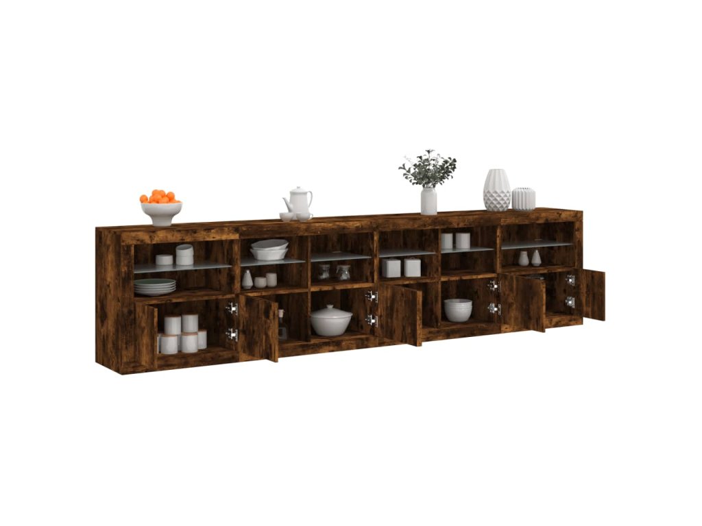 - RGB LED světla: Skříňka je vybavena zářivými RGB LED světly. Různé přizpůsobitelné nabídky vám umožní snadno změnit barvu světel nebo dokonce i nastavit světla tak, aby se přizpůsobila automaticky. Tato LED světla nejen podtrhují moderní vzhled příborníku, ale také mu dodávají na módním půvabu.