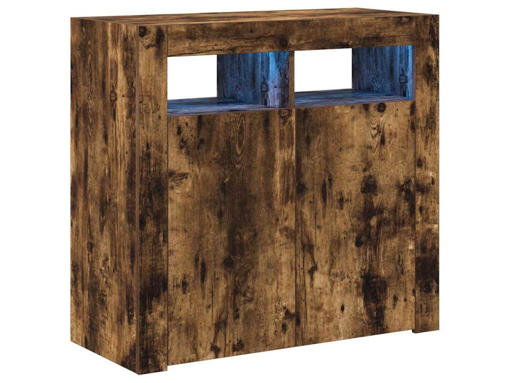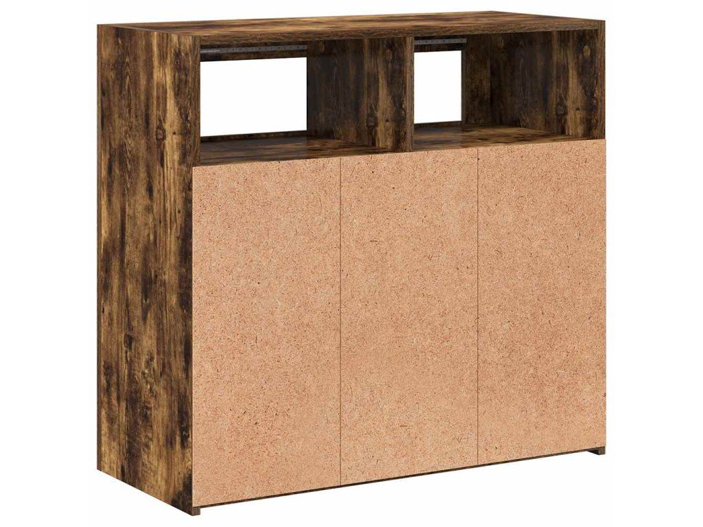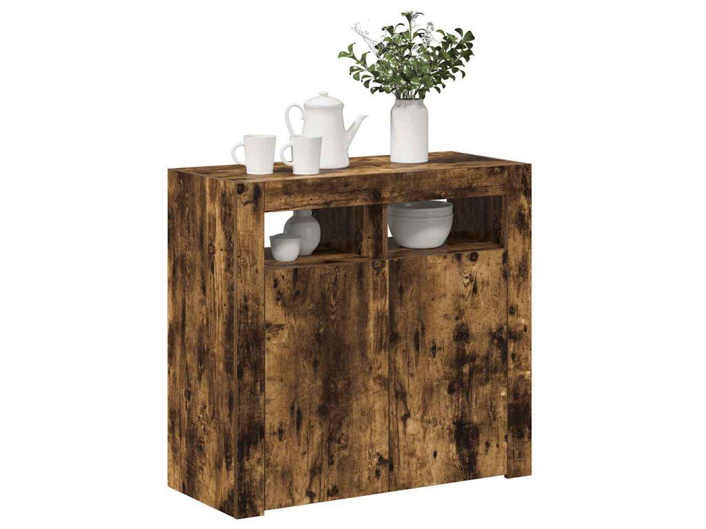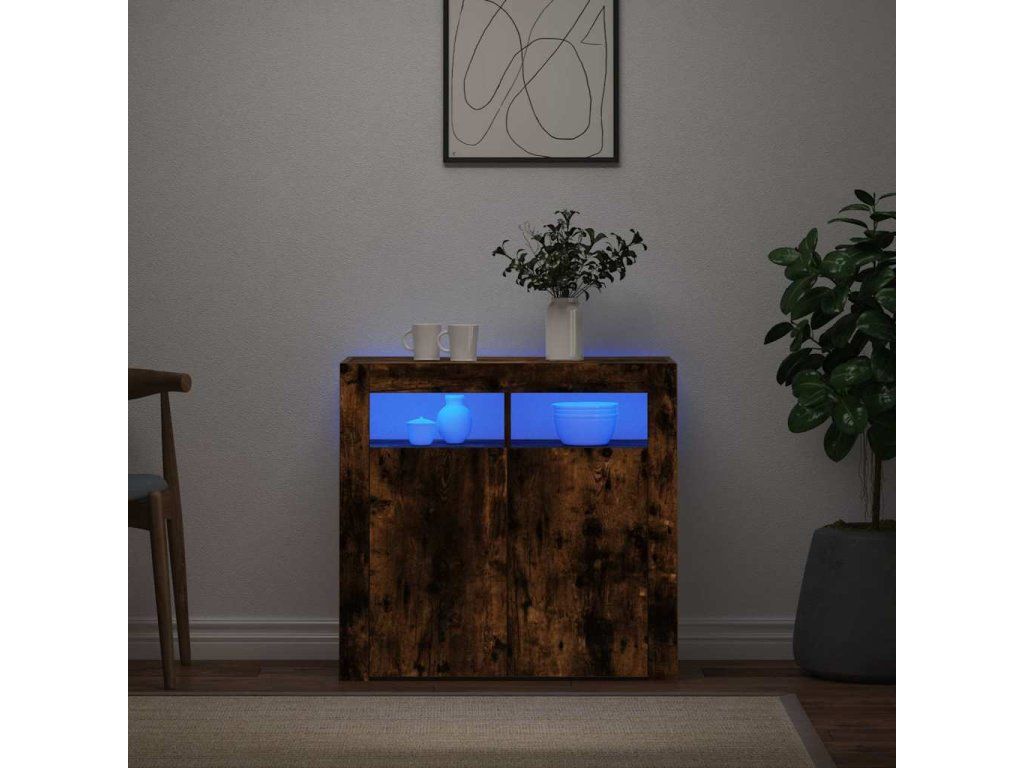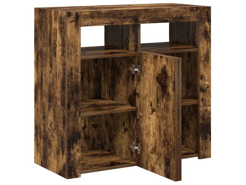 - Praktický materiál: Kompozitní dřevo je mimořádně kvalitní, má hladký povrch a vyznačuje se pevností, stabilitou a odolností proti vlhkosti. Příborník s LED světly je zhotovený z kompozitního dřeva, což usnadňuje jeho čištění.
