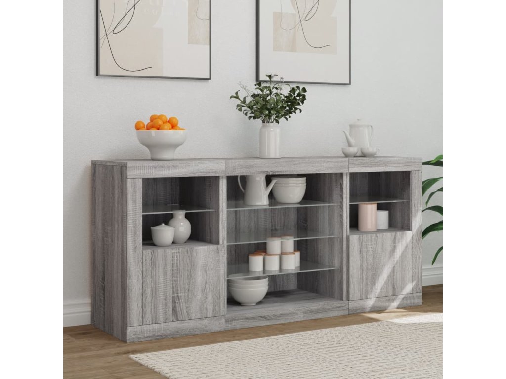 Zkrášlete svůj pokoj tímto moderním příborníkem s LED osvětlením. Snadno jej zkombinujete s nábytkem v jakémkoli stylu ve vašem domě.
