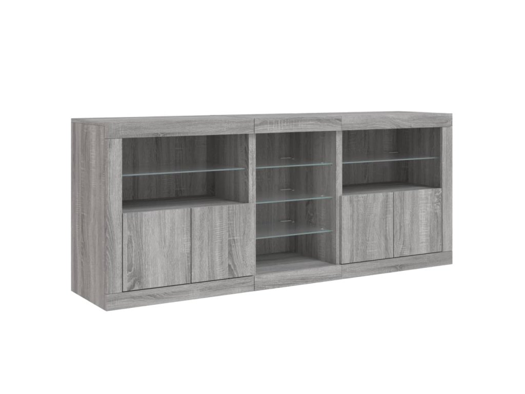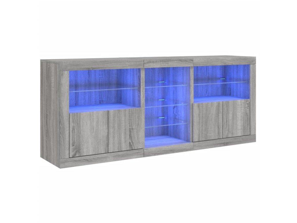 - RGB LED světla: Skříňka je vybavena zářivými RGB LED světly. Různé přizpůsobitelné nabídky vám umožní snadno změnit barvu světel nebo dokonce i nastavit světla tak, aby se přizpůsobila automaticky. Tato LED světla nejen podtrhují moderní vzhled příborníku, ale také mu dodávají na módním půvabu.