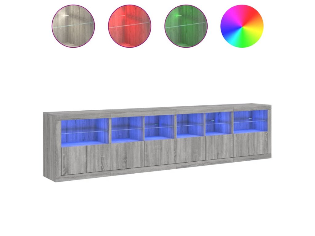 - RGB LED světla: Skříňka je vybavena zářivými RGB LED světly. Různé přizpůsobitelné nabídky vám umožní snadno změnit barvu světel nebo dokonce i nastavit světla tak, aby se přizpůsobila automaticky. Tato LED světla nejen podtrhují moderní vzhled příborníku, ale také mu dodávají na módním půvabu.