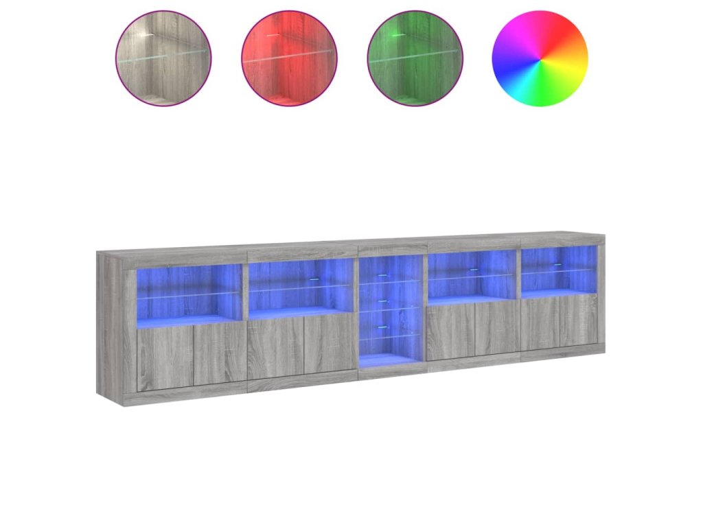 - RGB LED světla: Skříňka je vybavena zářivými RGB LED světly. Různé přizpůsobitelné nabídky vám umožní snadno změnit barvu světel nebo dokonce i nastavit světla tak, aby se přizpůsobila automaticky. Tato LED světla nejen podtrhují moderní vzhled příborníku, ale také mu dodávají na módním půvabu.