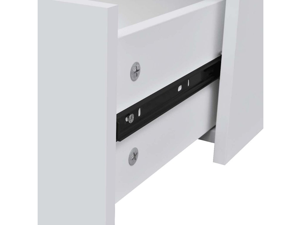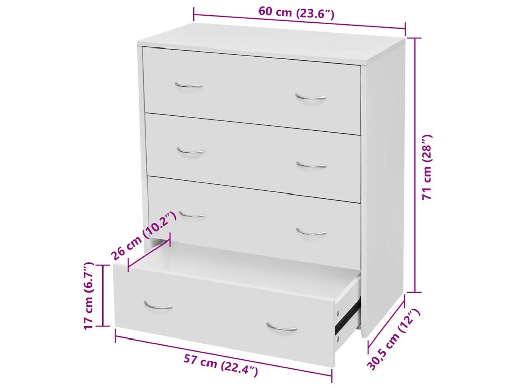 Příborník má čtyři zásuvky s úchytkami a hladkým vysouváním, které poskytují dostatek úložného prostoru pro vaše osobní věci a pomohou udržet v pokoji pořádek. Na horní části skříňky můžete také vystavit dekorace, jako jsou fotografie, knihy a rostliny v květináčích. Skříňka je vyrobená z vysoce kvalitního kompozitního dřeva a MDF, je tedy odolná a snadno se čistí.