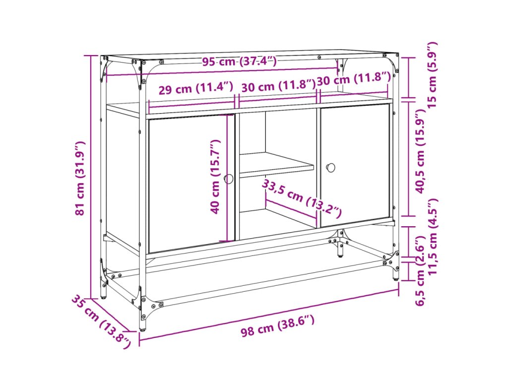 - Rozměry: 98 x 35 x 81 cm (D x Š x V)