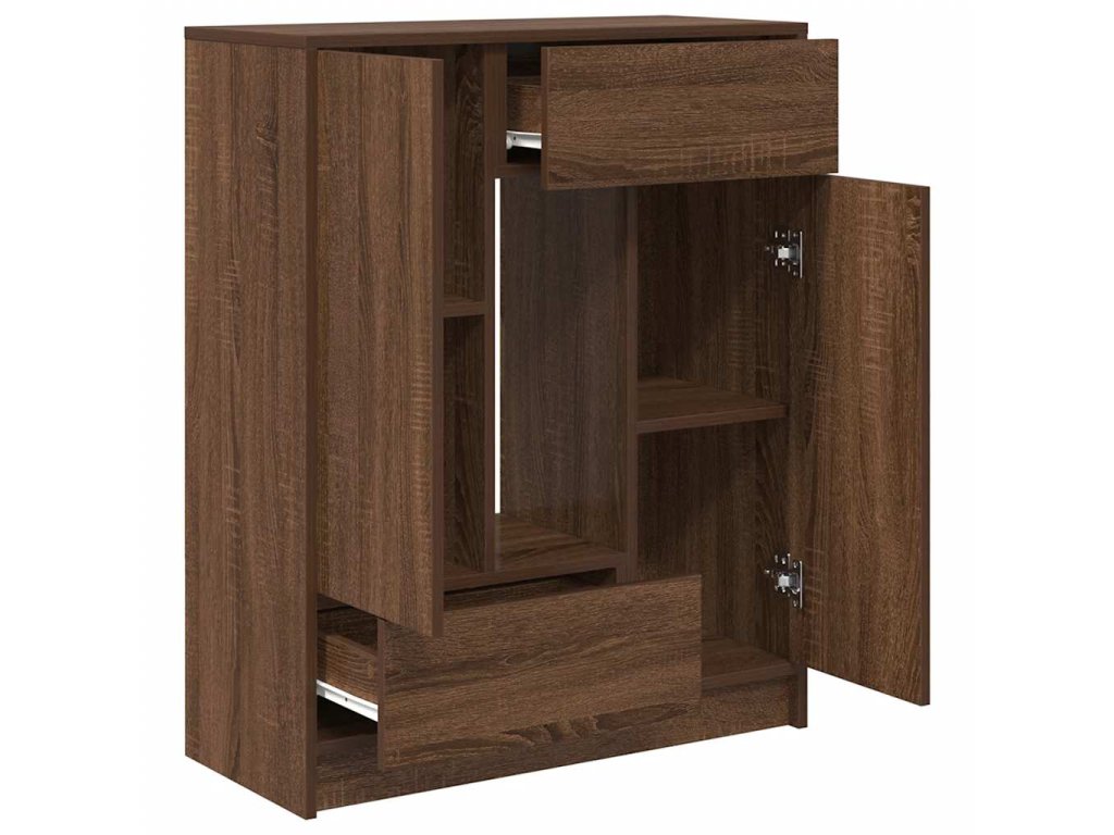 - Dostatek úložného prostoru: V bufetové skříni jsou dvířka a zásuvky, které zajišťují přehledné uspořádání věcí. Dveře skříně nabízejí uzavřený úložný prostor, který chrání vaše věci a udržuje je mimo dohled, zatímco zásuvky poskytují další prostor pro snadný přístup k různým předmětům.