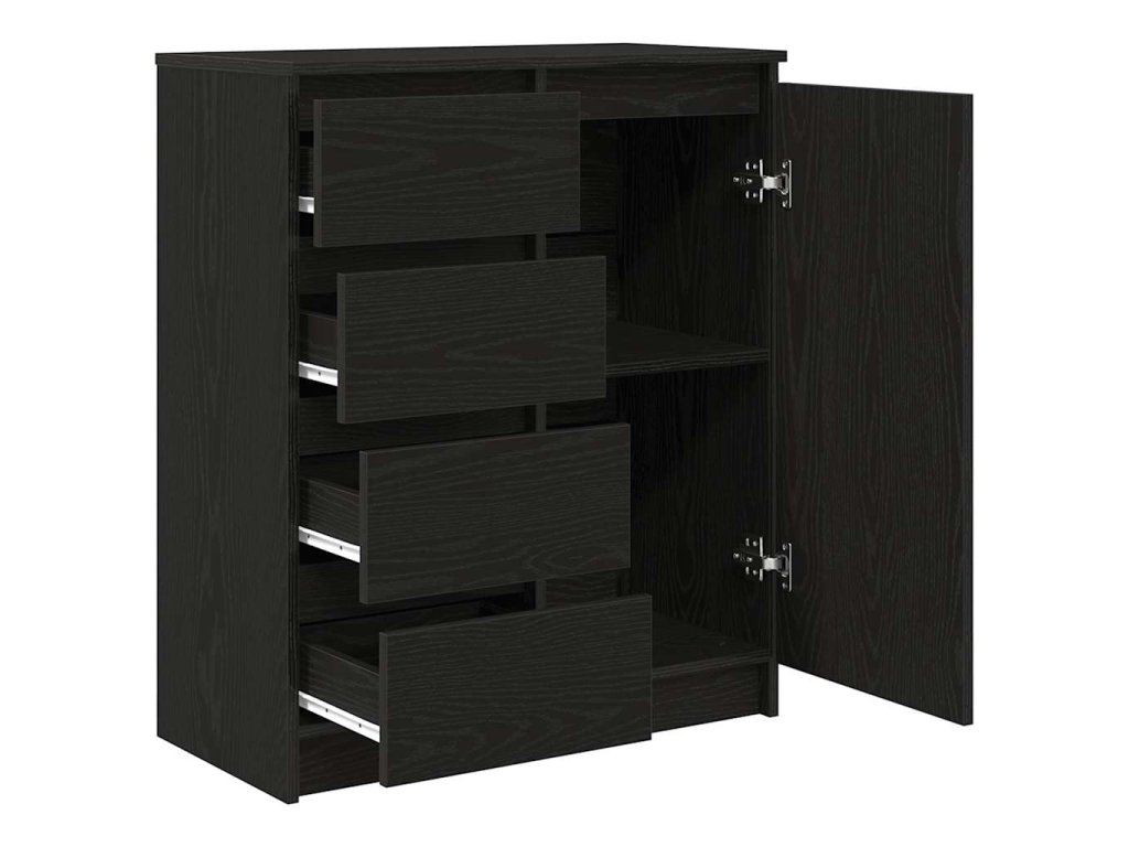 - Dostatek úložného prostoru: Příborník je vybaven zásuvkami, policí a dvířky, které zajišťují přehledné uspořádání věcí. Dveře skříně poskytují uzavřený úložný prostor, který chrání vaše věci před zraky, zatímco zásuvky nabízejí další prostor pro snadný přístup k různým předmětům. Vnitřní police pomáhá třídit majetek, zlepšuje organizaci a čistotu.