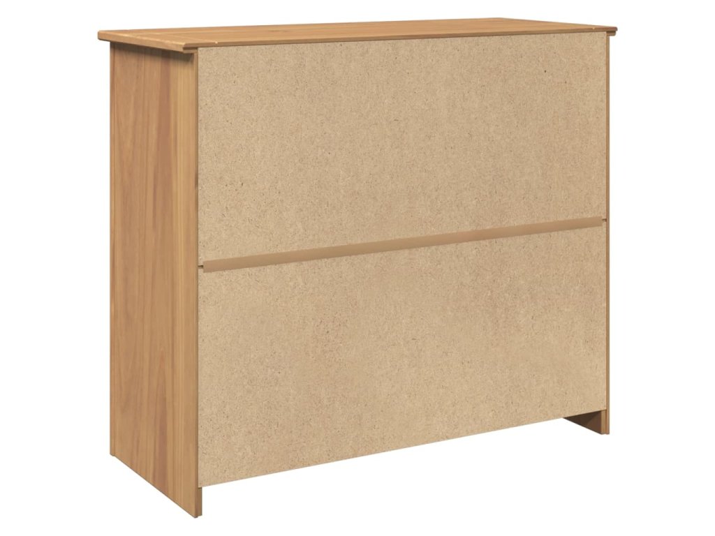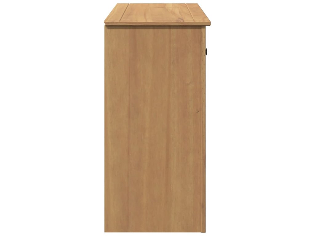 - Masivní borové dřevo: Masivní borové dřevo je krásný přírodní materiál. Borové dřevo má rovnou kresbu a obsahuje suky, které materiálu dodávají jeho charakteristický, rustikální vzhled. Skříňka je vyrobena z masivního borového dřeva a je odolná a robustní.